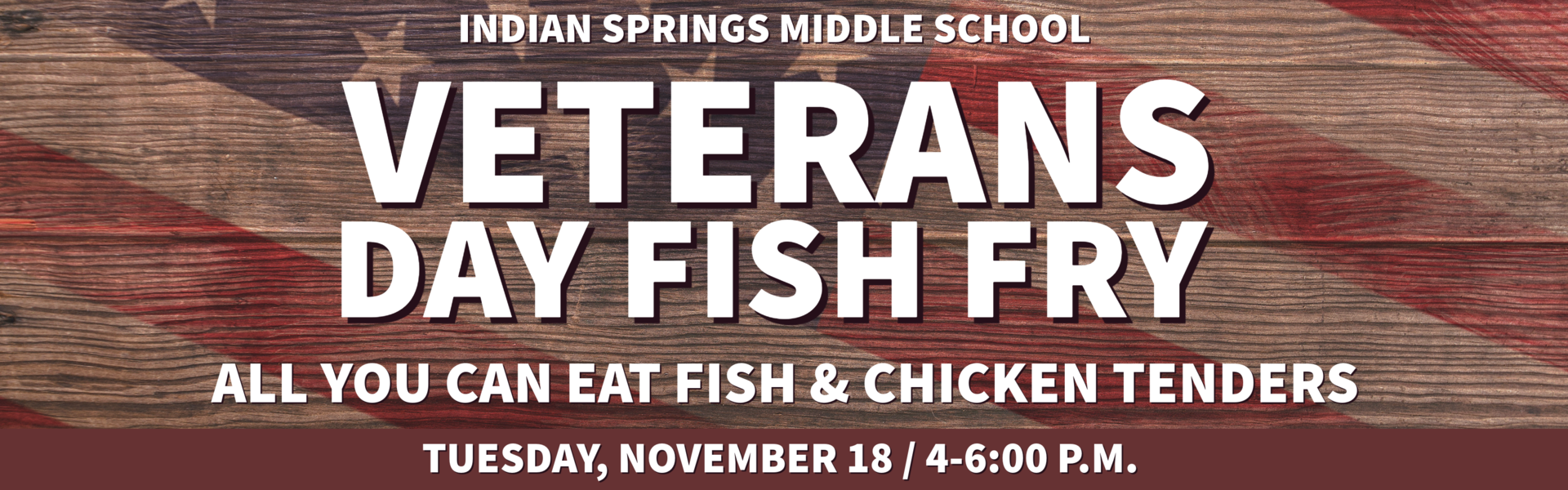 Join us for the Veterans Fish Fry and Chicken Strips on Tuesday, November 18th, from 4:00 to 6:00 p.m. at ISMS. Both dine-in and takeout options will be available. Please enter through door #7. Enjoy live performances by the 7th and 8th band and the Choir during the event. Come out and support our veterans!