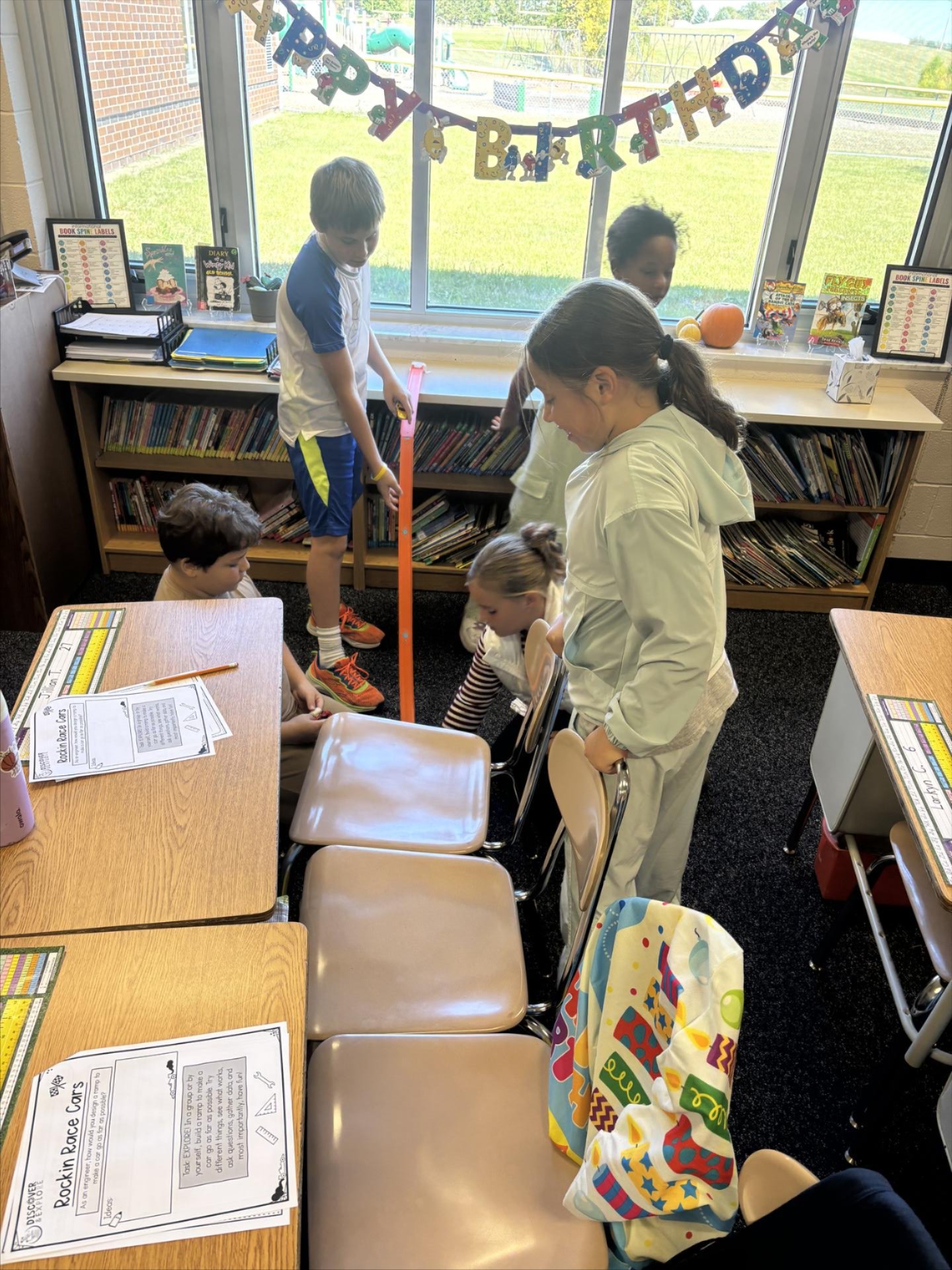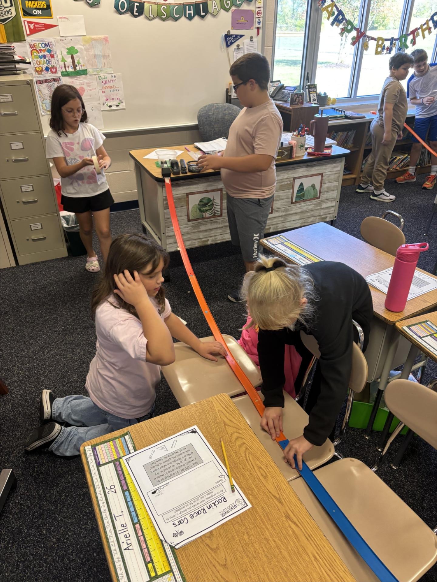 4th Graders have been learning about different kinds of energy. They worked in groups to build ramps to help them learn about potential and kinetic energy.
